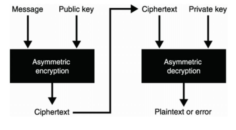 비대칭 암호화는 공유된 공캐키로 평문으로 암호화한 후, 비밀키로 이를 복호화한다.