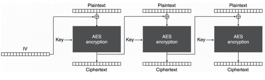 CBC 모드는 암호화 평문을 블록으로 잘라서, 반복적으로 암호화를 실행한다. IV 값을 통해 암호화값의 결과를 랜덤화시킬 수 있다. CBC 모드에서, IV 값은 반복 불가능해야 하고, 예측할 수 없어야 한다. 많은 AES 라이브러리들에서, IV 값들은 예측할 수 없는 랜덤 함수로 구현된다.
