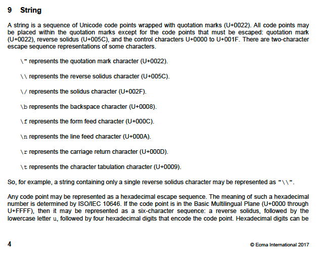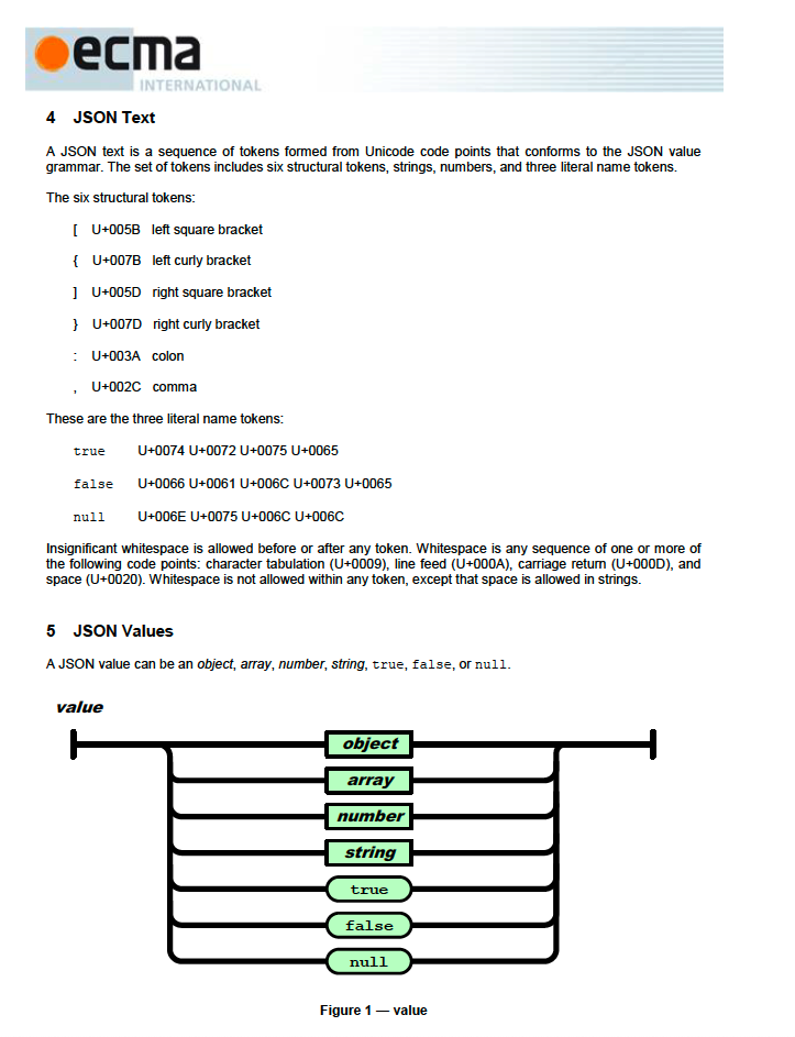 이때, 가장 마지막 조건인 'abcd' 는 JSON 이 아니다. 이 또한 ECMA-404 에서 그 근거를 찾을 수 있다.