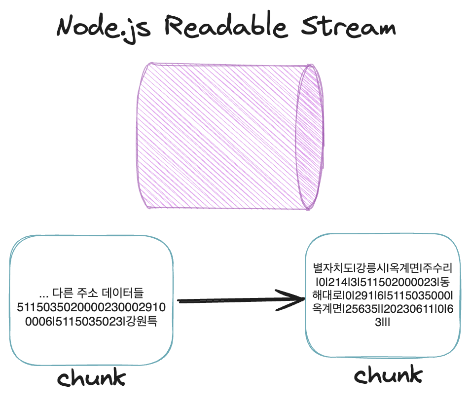 한 주소가 Stream 의 chunk 와 chunk 사이의 경계에 위치할 경우, 다음 chunk 가 오기 전까지 딜레이가 생길 수 있다. 만약 이 딜레이 기간에 주소 파싱이 이루어지게 되면, 주소의 컬럼이 부족한 상태로 데이터 파싱이 이루어지게 된다. 실제 데이터 형태와 같이 줄 단위로 데이터를 스트림에 흐르게 한다면 문제가 발생하지 않을 것이라는 생각이 들었다.